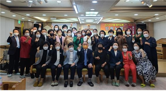 ▲노회원들이 기념 촬영을 하였다. 인천노회 정기노회가 지난 10월 11일(월) 오전 11시 인천광역시 계양구 작전동 912-3에 위치한 도두리교회(담임 박상철 목사) 대성전에서 있었다. 이날 노회에 앞서 드려진 예배는 서기 이복순 목사(행복한교회)가 인도하여 김명숙 목사(맑은샘교회)가 기도를, 성경본문 “행 17:30~31”절의 말씀을 인도자가 봉독을 하였다. 조인영목사 이병각 목사가 각각 찬양과 색소폰 연주로 하나님께 영광을 돌렸다. 노회장 박상철 목사가 ‘모든 사람이 믿을 만한 부활 증거’란 제목으로 말씀을 전할 때 모두가 “아멘”으로 화답을 하며 은혜를 나누었다. 김혜숙 목사(승리교회)의 찬양가운데 드려진 예물을 위하여 이정자 목사(인천지구촌교회)가 봉헌 기도를 드렸다. 인도자의 광고 후 노회장 박상철 목사의 집례로 성찬 예식을 치른 뒤 박상철 목사의 축도로 예배를 마쳤다. 노회장 박상철 목사의 인도로 노회를 개회하여 이명희 목사(선한목자교회)가 기도를, 서기 이복순 목사가 회원점명과 서기 보고를, 회계 이정자 목사가 회계 보고를 하였다. 신 회무처리를 은혜가운데 마친 노회는 천이순 목사(인천은혜교회)의 마침 기도로 인천노회 정기노회를 은혜 가운데 마쳤다.