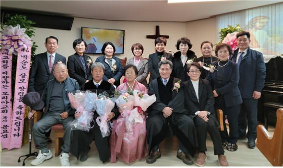 ▲장로 장립 권사 취임 감사예배 후 관계자들과 기념촬영을 하였다. 큰사랑교회(담임 김태순 목사) 장로 장립 및 권사 취임 감사예배가 지난 11월 6일(토) 오전 11시 경기도 양평군 단월면 보산정길 3에 위치한 큰사랑교회 예배당에서 있었다. 이날 예배는 남양주노회 주관으로 서기 김금숙 목사(세겜교회)가 인도하여 나경옥 목사(임마누엘교회)가 기도를, 인도자가 성경 본문 “딛 1:5~9”절의 말씀을 봉독을 하였다. 김보늬 목사(하늘빛교회)의 특별 찬양이 있은 뒤, 노회장인 김태순 목사가 ‘청지기의 책무’라는 제목으로 말씀을 전할 때 모두가 “아멘”으로 화답을 하며 은혜를 나누었다. 김태순 목사가 기도로 말씀을 마친 후, 다함께 찬양을 부르며 예물을 드리고 드려진 예물을 위하여 김경숙 목사(마라나타교회)가 봉헌 기도를 드렸다. 이어진 장로 장립 및 권사 취임식을 노회장 김태순 목사가 인도하여, 임직을 받는 박순도 집사를 앞에 세워 오른손을 들어 서약을 하게 하고, 임직 가운을 착위케 하여 안수위원들과 함께 머리위에 손을 얹어 안수기도를 하였다. 안수위원들과의 악수례를 나눈 후 노회장 김태순 목사는 ‘대한예수교장로회합동개혁총회 남양주노회장인 나는 예수 그리스도께로부터 받은 직책과 교회의 권위를 가지고 대한예수교장로회합동개혁총회 큰사랑교회 박순도씨가 2021년 11월 6일자로 장로가 된 것을 성부와 성자와 성령의 이름으로 공포합니다.’라고 공포를 하였다. 이어 안수패를 전달을 한 뒤 윤해용 목사(광주갈멜산기도원)가 권면 및 축사의 말을 전하였다. 박순도 장로가 감사의 인사말을 전한 뒤 모두가 한마음으로 찬양으로 하나님께 모든 영광을 올려 드린 후 유병철 목사(광주갈멜산기도원)의 축도로 장로 장립 감사 예배를 마쳤다. 이날 장로 장립과 함께 장금연 권사 취임도 함께 진행이 되었다.