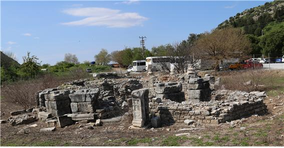 ▲누가의 묘로 전해져 내려오는 건물 터, 원래 건축물은 로마시대 유명 용사나 건강의 신을 숭배하기 위한 신전이었으나 비잔틴 시대에 들어 그 구조를 변경하여, 서쪽을 입구로 하고 동쪽을 머리 방향으로 하여 신전으로 사용 되었다고 한다. 1860년 영국의 고고학자 T.J.WOOD가 오네이온을 발굴하던 중 귀가 길에 본 건물의 일부 인 십자가와 황소모양이 그려진 비석을 보고 누가의 무덤이었음을 판명하였다.