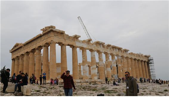 ▲후방 측면에서 바라본 파르테논 신전의 모습. 많이 복원이 된 형태이다.